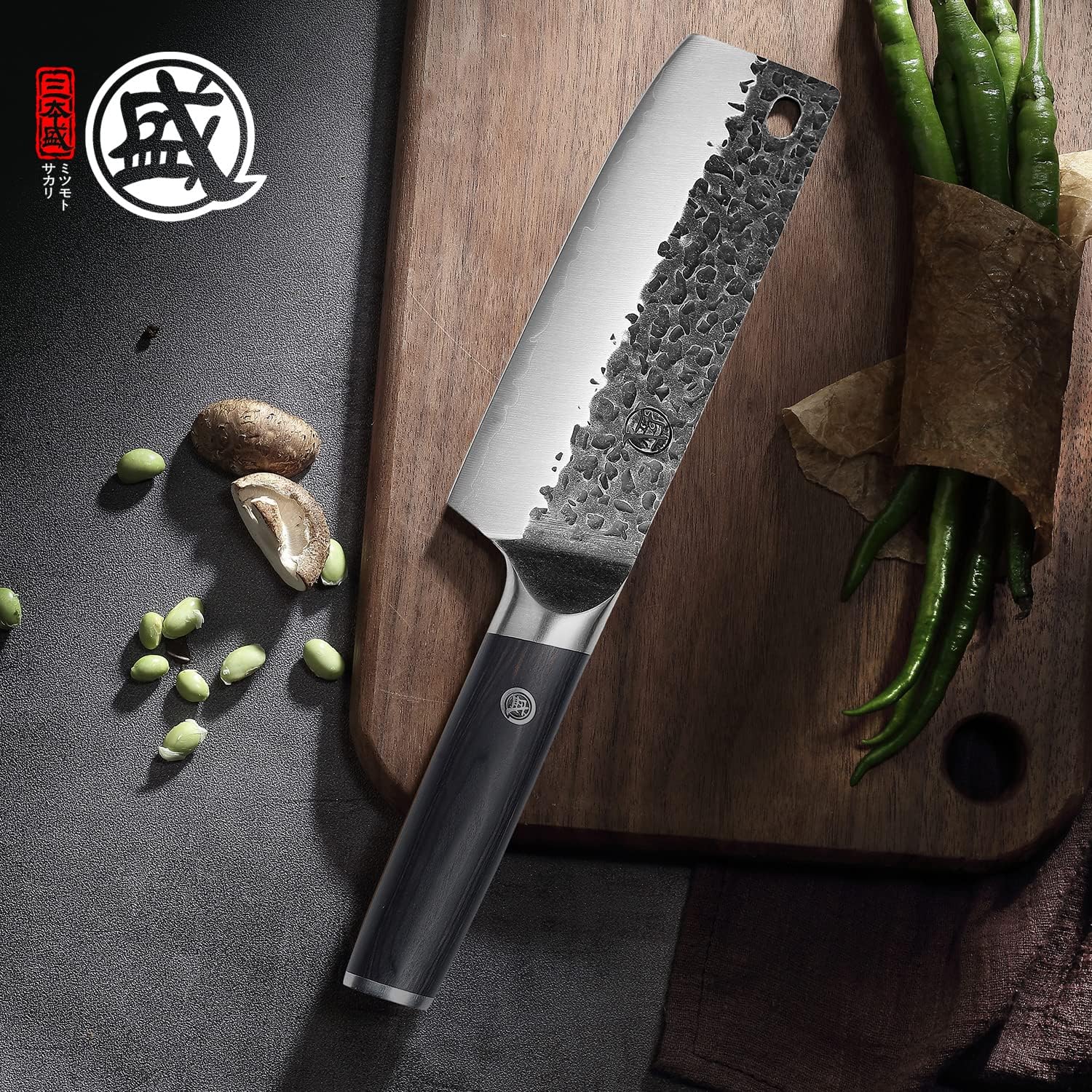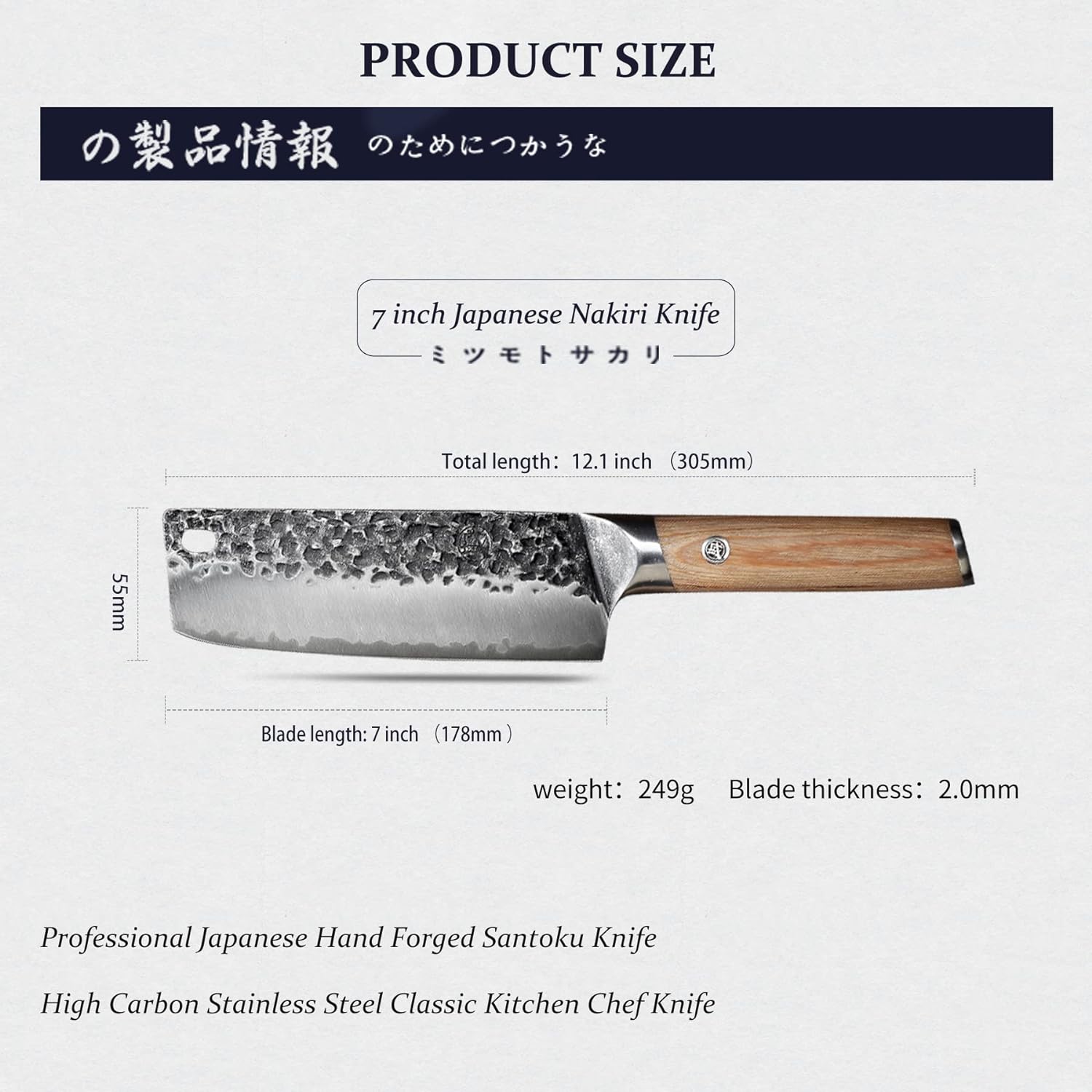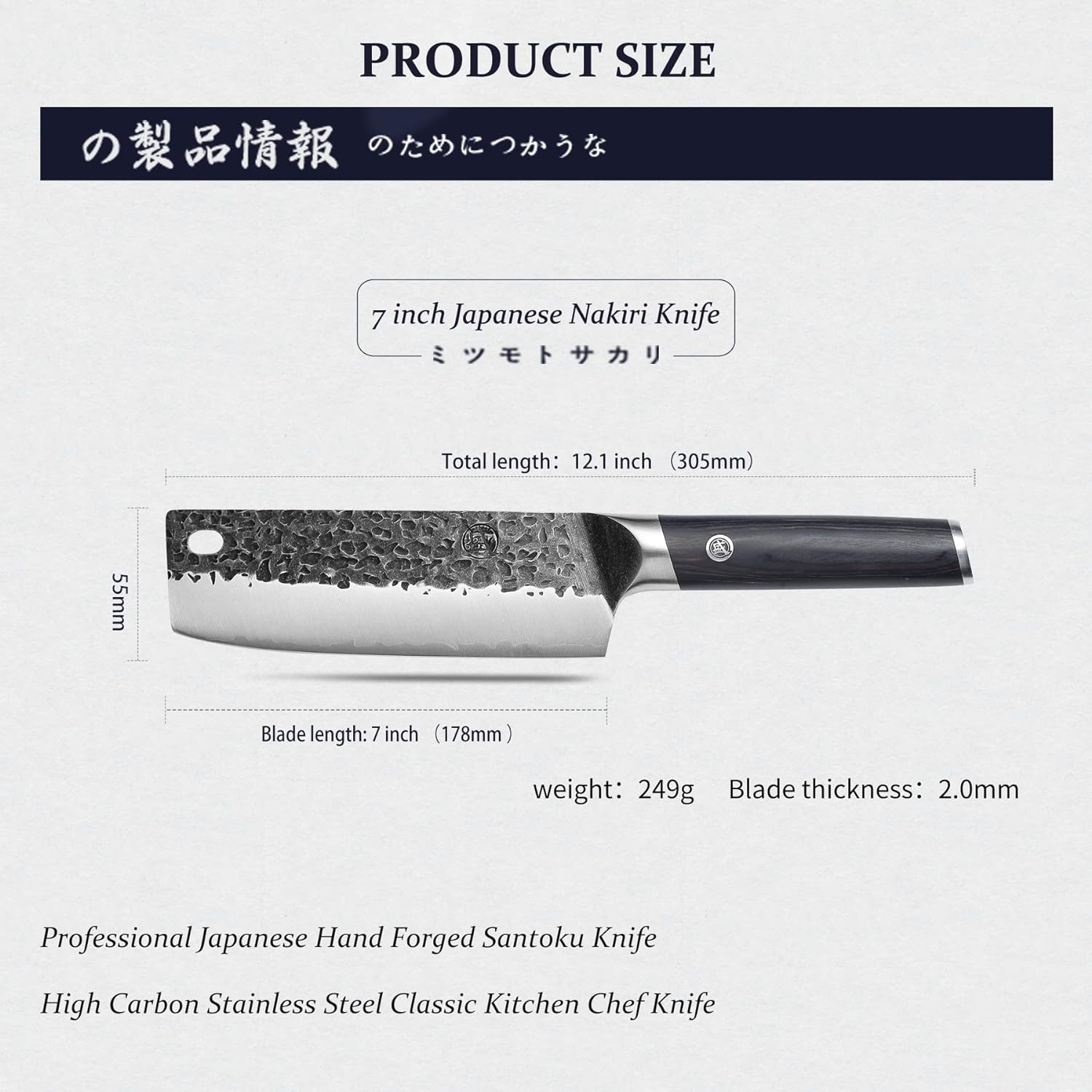 This professional-grade KD 7 Japanese Nakiri Chef Knife boasts 3 layers of high carbon steel for exceptional strength and durability. Its expertly crafted design allows for precise and effortless cutting. making it a must-have tool for any chef or cooking enthusiast. Upgrade your kitchen with this versatile and reliable knife.