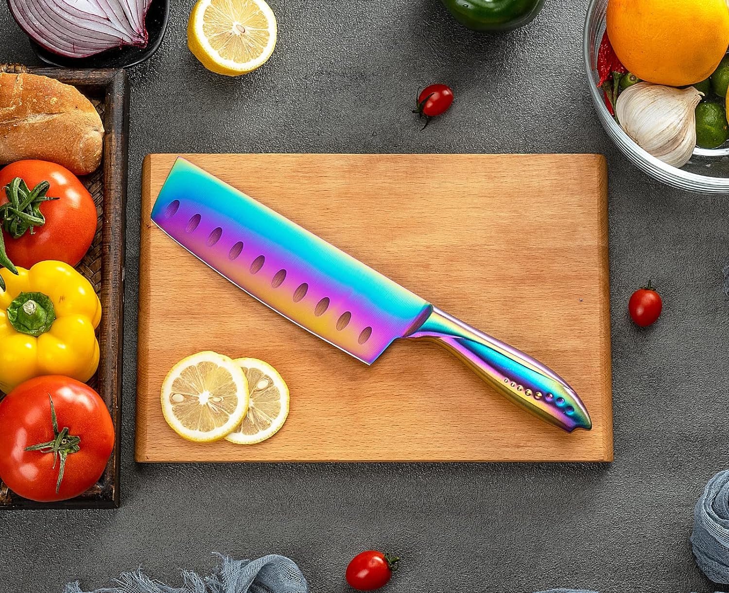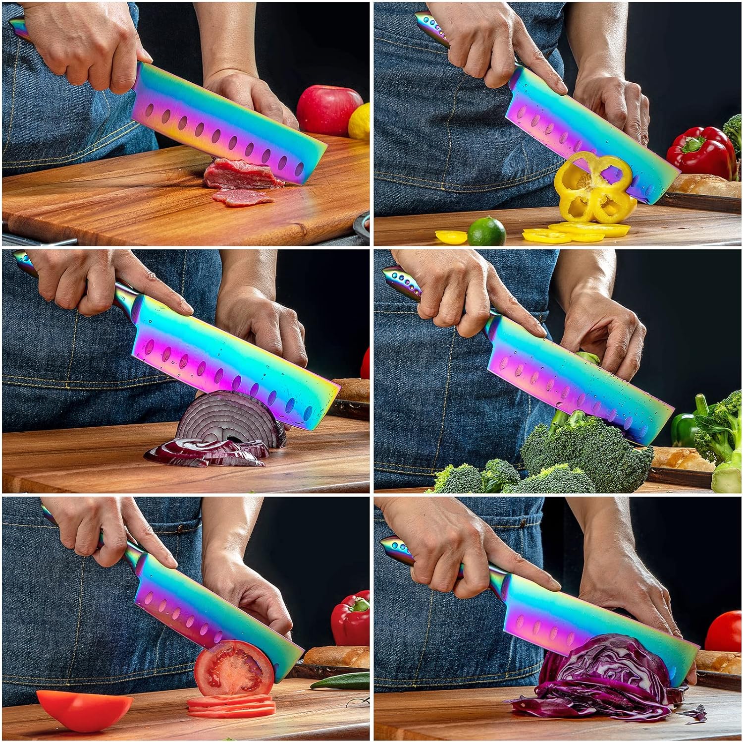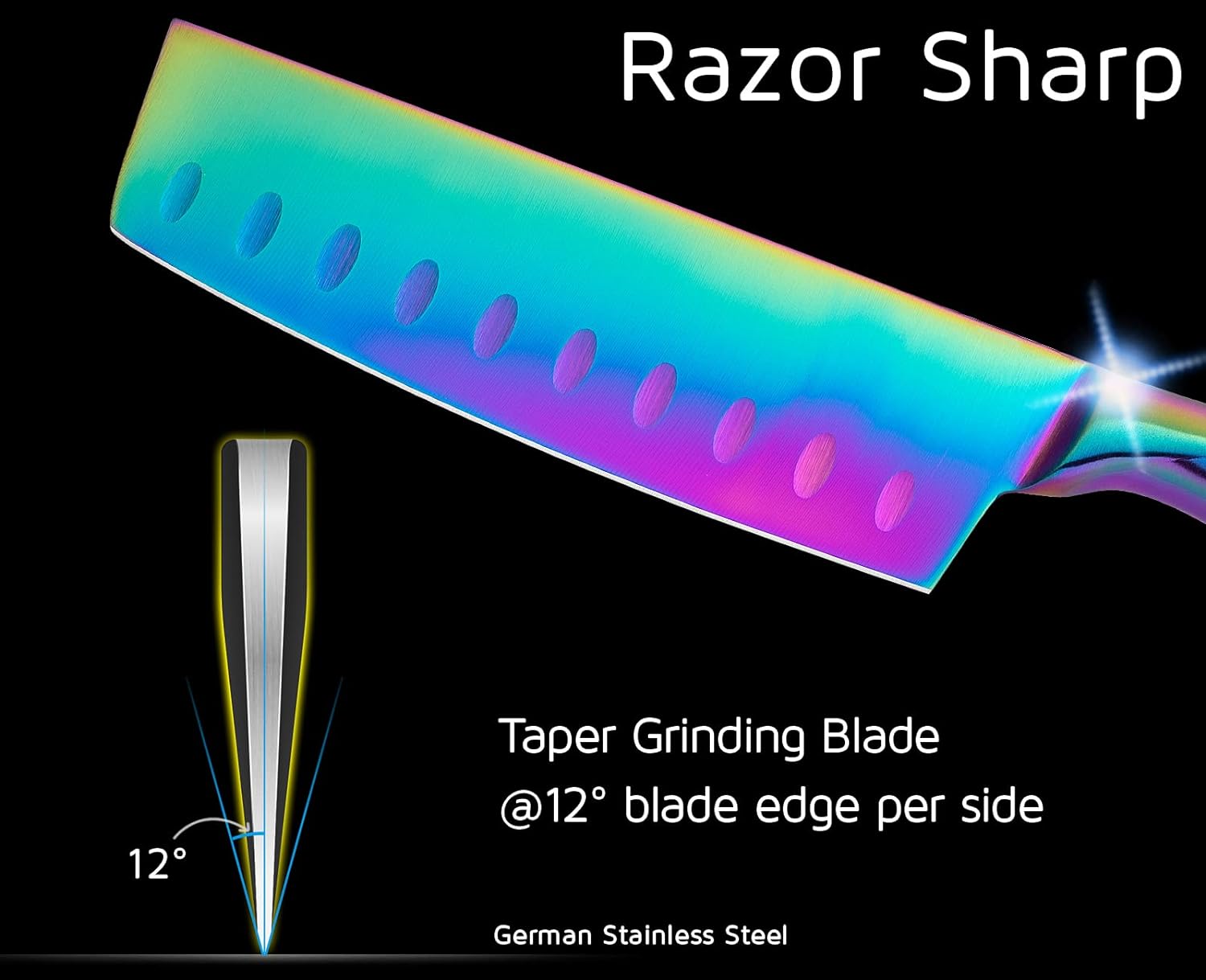 This KD 7 Nakiri Chef Knife is expertly crafted from high-quality German stainless steel. guaranteeing durability and precision in every cut. Its versatile nakiri blade allows for effortless slicing and dicing of fruits. vegetables. and meats. Comes in a beautiful gift box. making it a perfect gift for any cooking enthusiast.