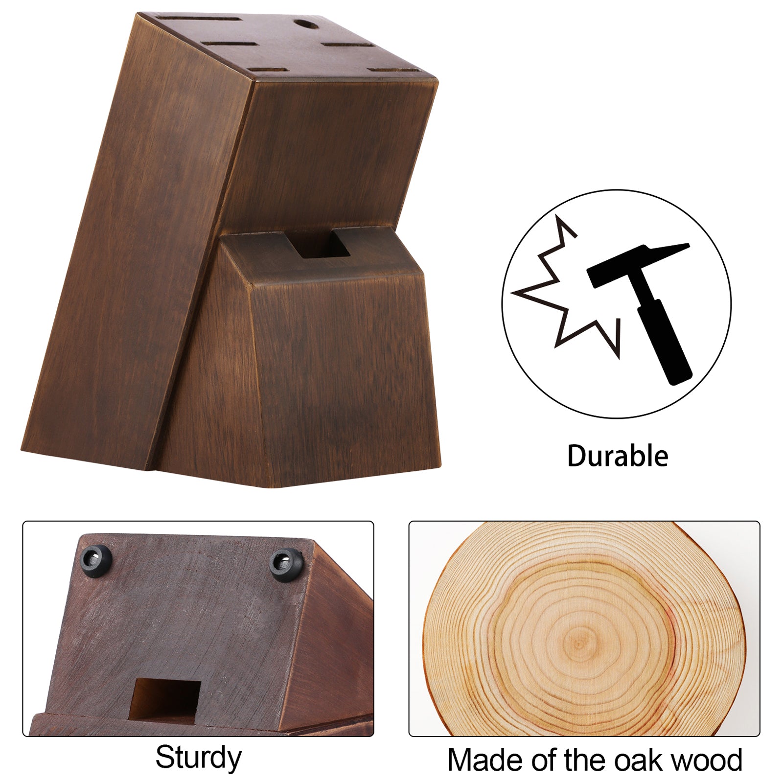 Easy to Care and Storage: All cutting tool are well organized into 1 wood block that made of durable natural oak. Not only is it a good decor in your kitchen. but also can reduce contact with air and risk of rusting.(Dishwasher is not recommended)