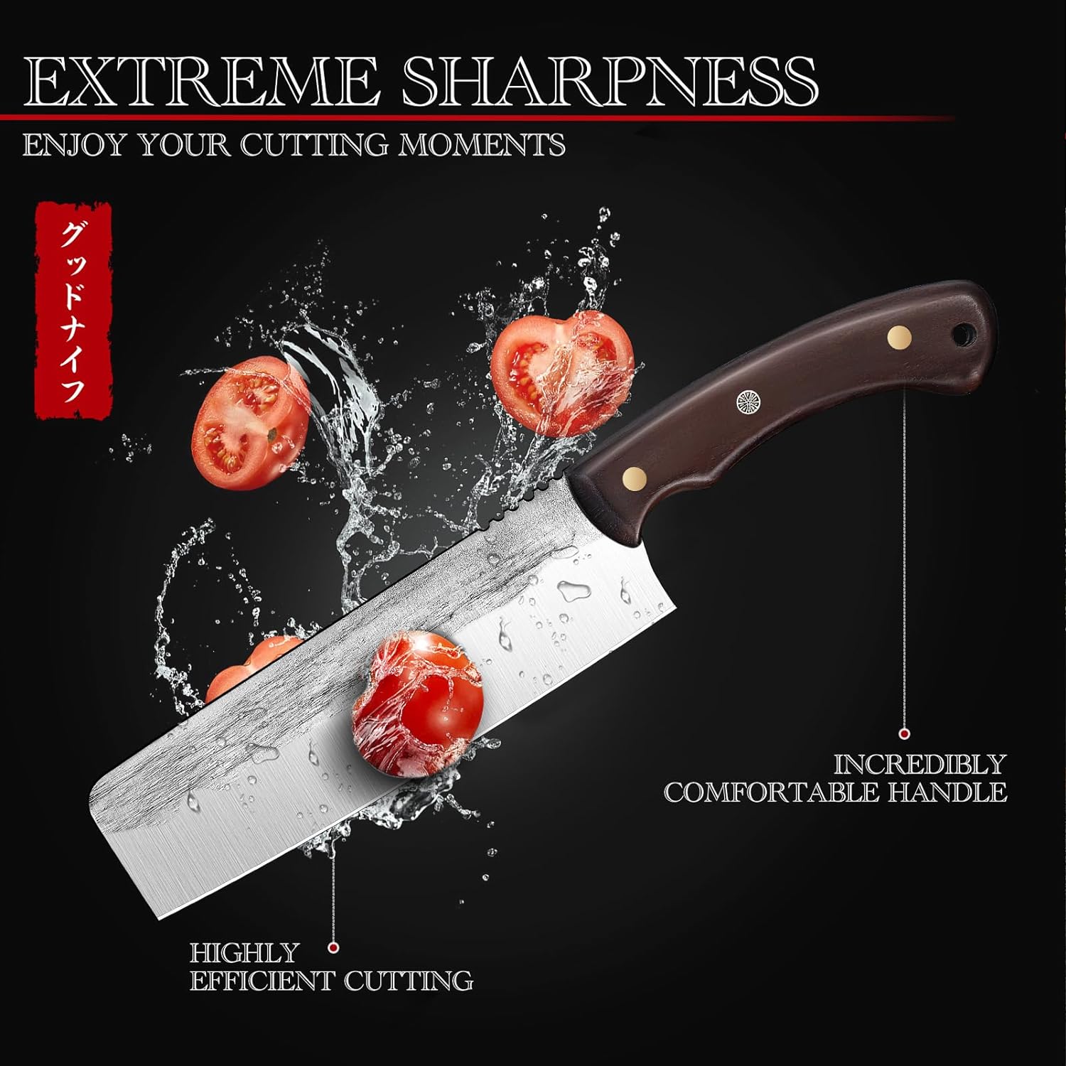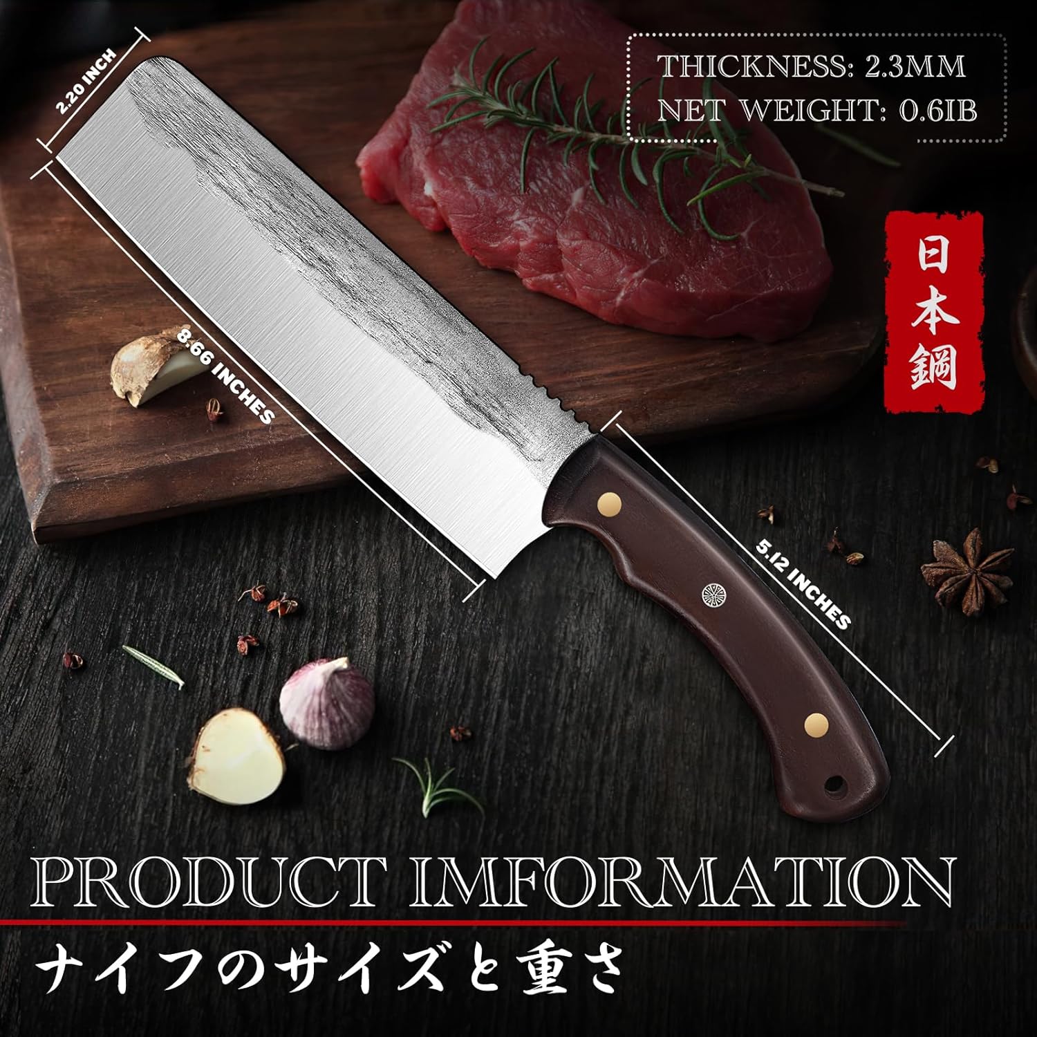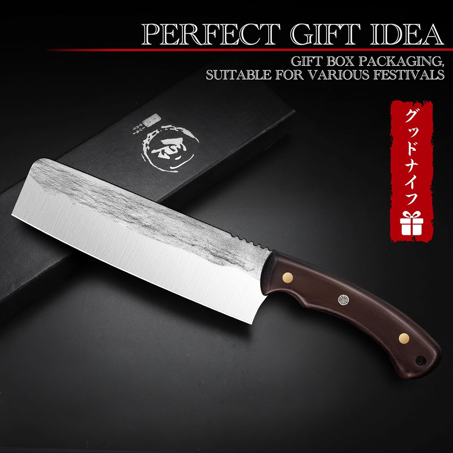 Effortlessly chop and slice with precision using the KD Hand Forged Nakiri Chef Knife. Made from high carbon steel and designed to last. this knife is a chef's essential. Comes with a stylish gift box. making it a perfect gift for any occasion. Upgrade your kitchen arsenal today!