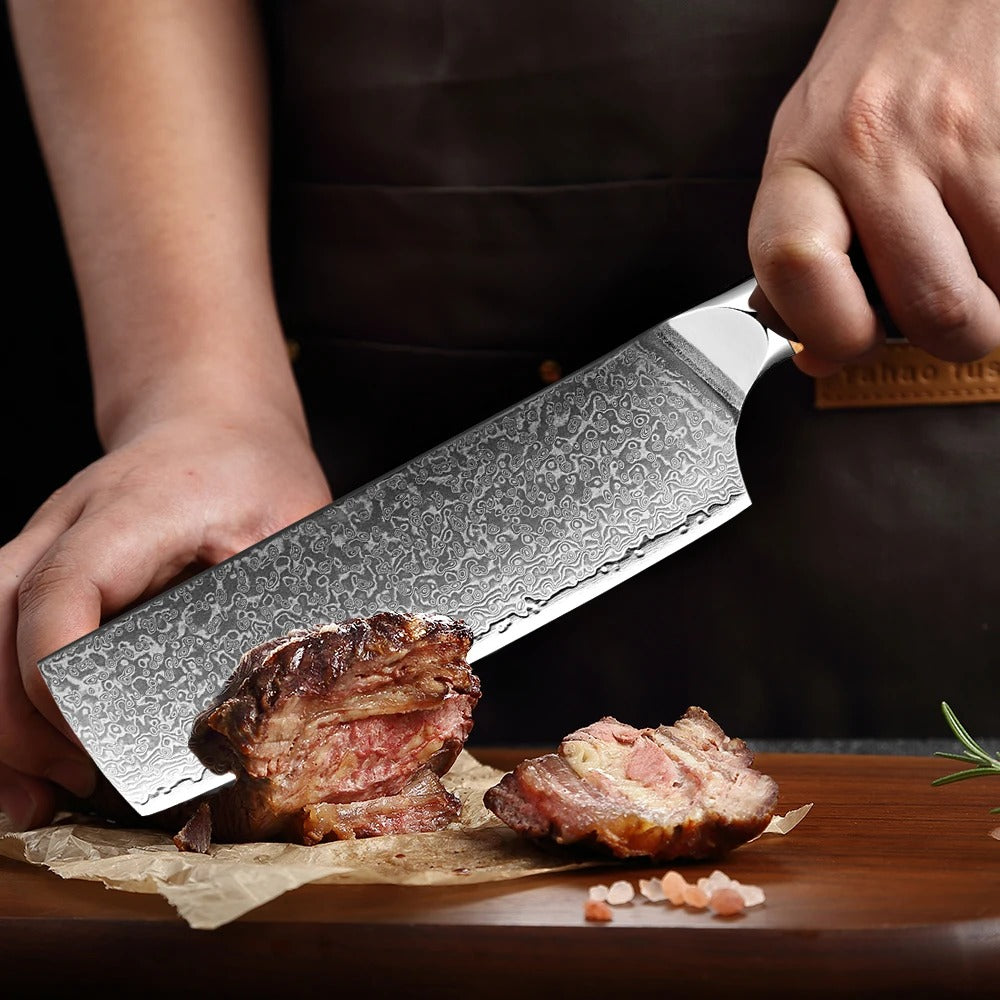 Crafted with precision and expertise. the KD Japan Nakiri Knife is a must-have for every chef. Its 7 Damascus VG10 stainless steel blade offers exceptional sharpness and durability. while its ergonomic handle ensures a comfortable and secure grip. Elevate your cooking experience with this versatile and reliable chef's knife.