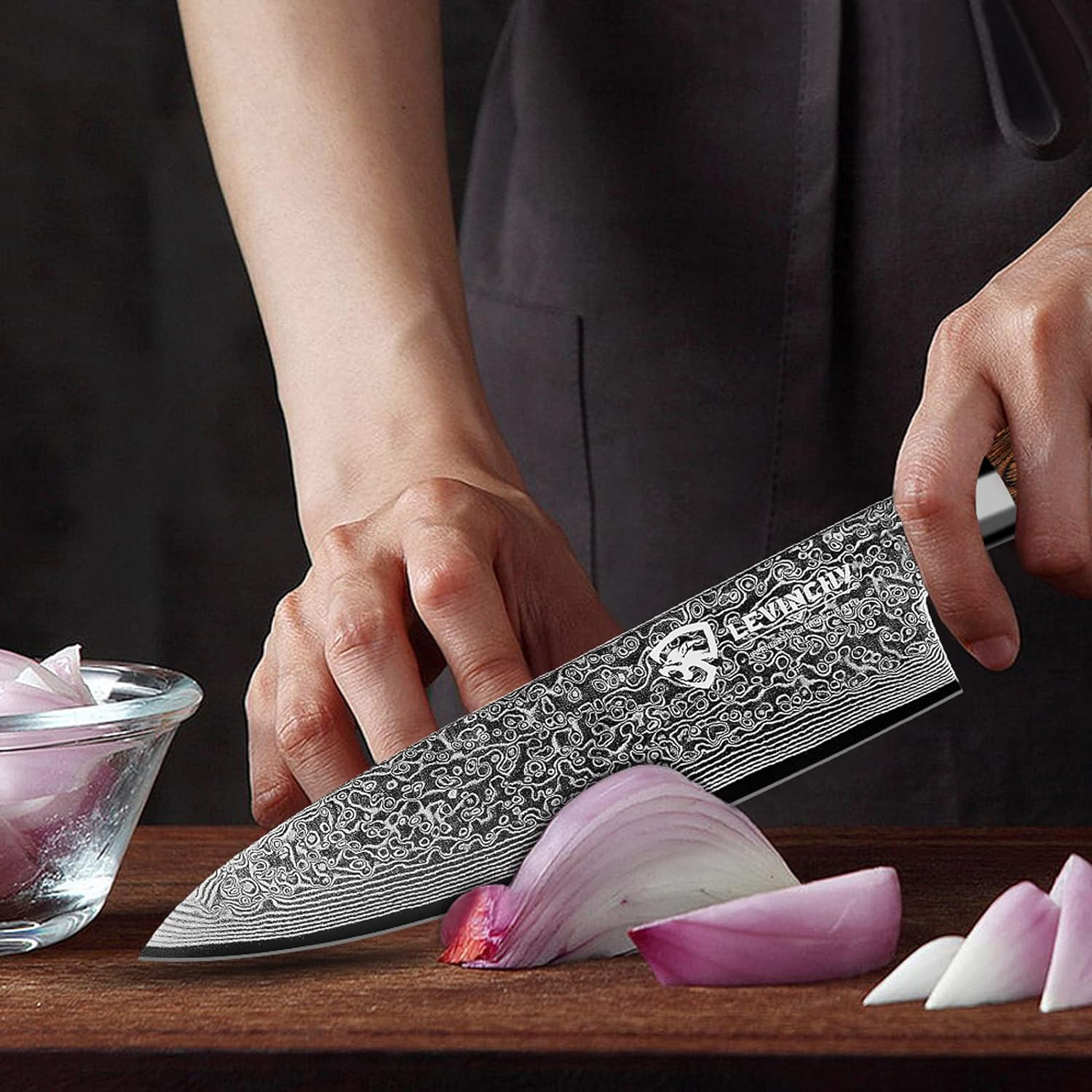 This 8 inch Damascus Chef's Knife from KD Professional is razor-sharp and crafted with a 67-layer Japanese steel for maximum strength and durability. The ergonomic handle ensures comfort and a secure grip while the gift box offers perfect gift-giving convenience. Perfect for any professional or budding chef.
