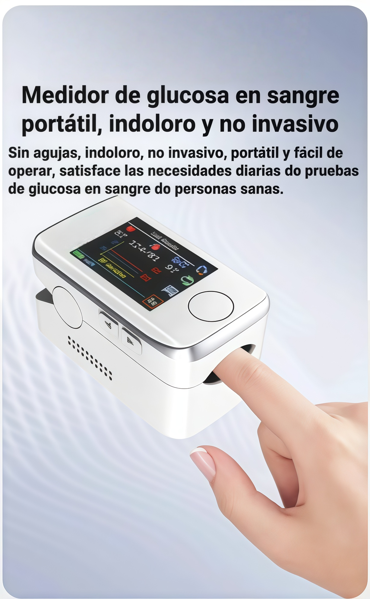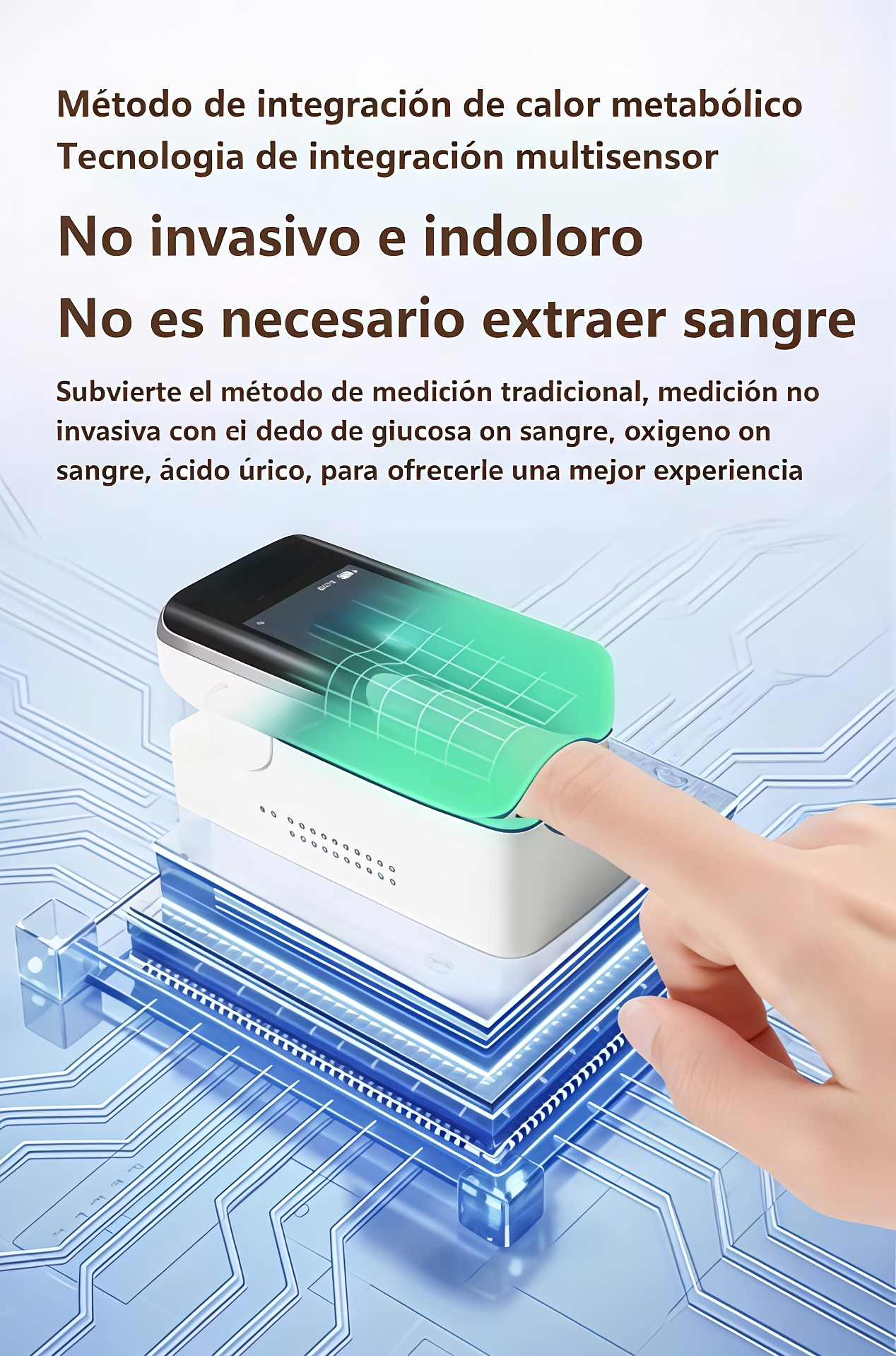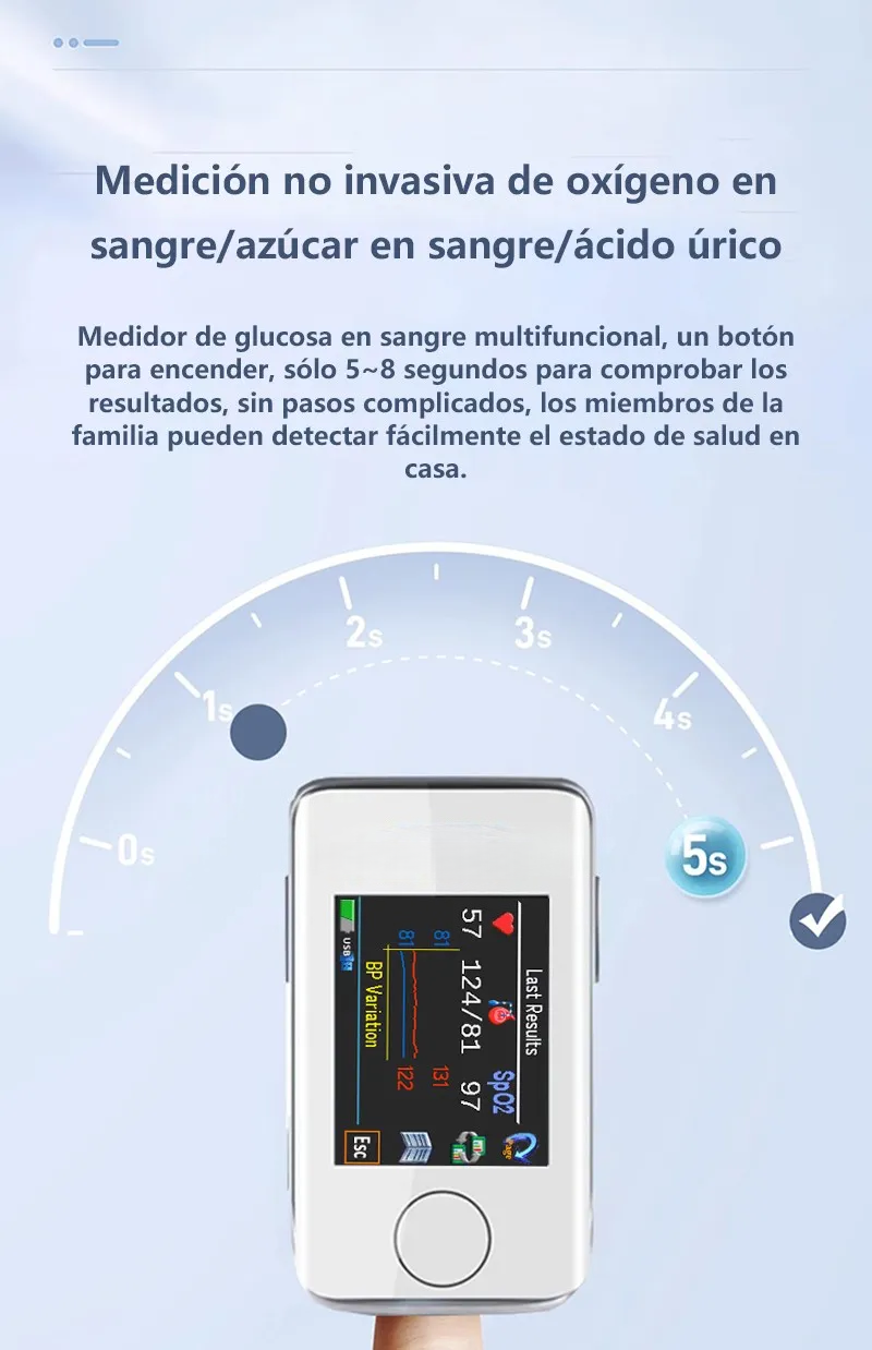 El primer medidor de glucosa en sangre multifuncional y no invasivo no solo permite medir de forma indolora el nivel de glucosa, la presión arterial, el oxígeno en sangre y el ácido úrico, sino que además incorpora una innovadora función de tratamiento con láser.