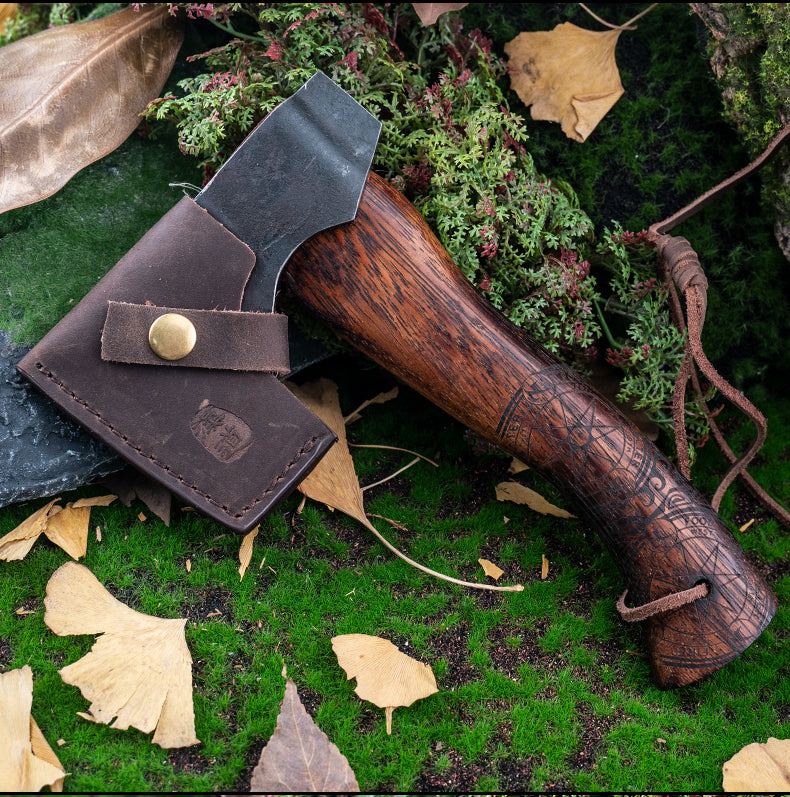 Expertly crafted for outdoor activities. this KD High Carbon Steel Hatchet is perfect for camping and tactical use. With its durable and sharp blade. it easily splits wood and can also be used as a hammer. Its wooden handle provides a comfortable and secure grip for precise swings.