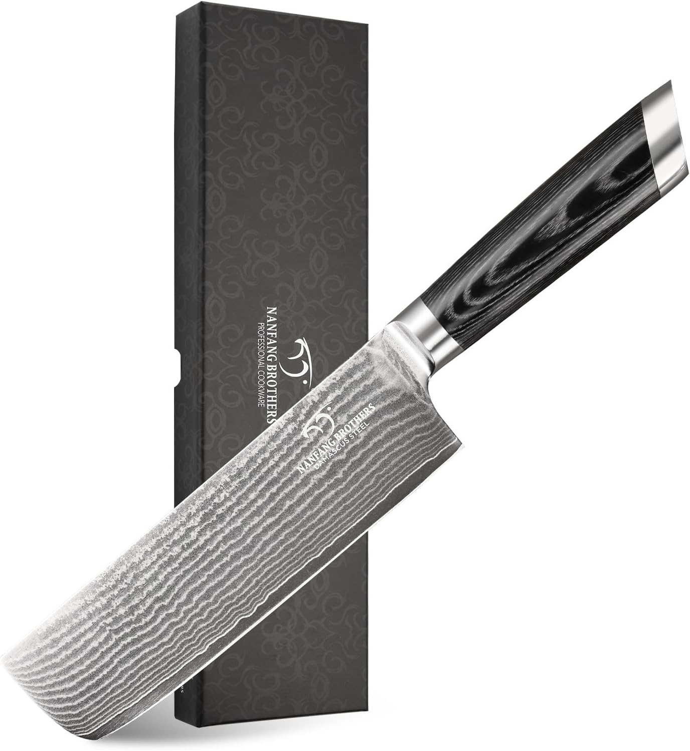 PREMIUM NAKIRI KNIFE - Immerse yourself in the art of culinary precision with our Nakiri knife. meticulously forged from 67 layers of Damascus steel. This knife is a testament to extraordinary sharpness and enduring strength. A nod to Japanese culinary tradition. the Nakiri features a slender. lightweight. rectangular blade with an impeccably sharp straight edge. Its design not only minimizes friction but also prevents food from clinging to the blade.